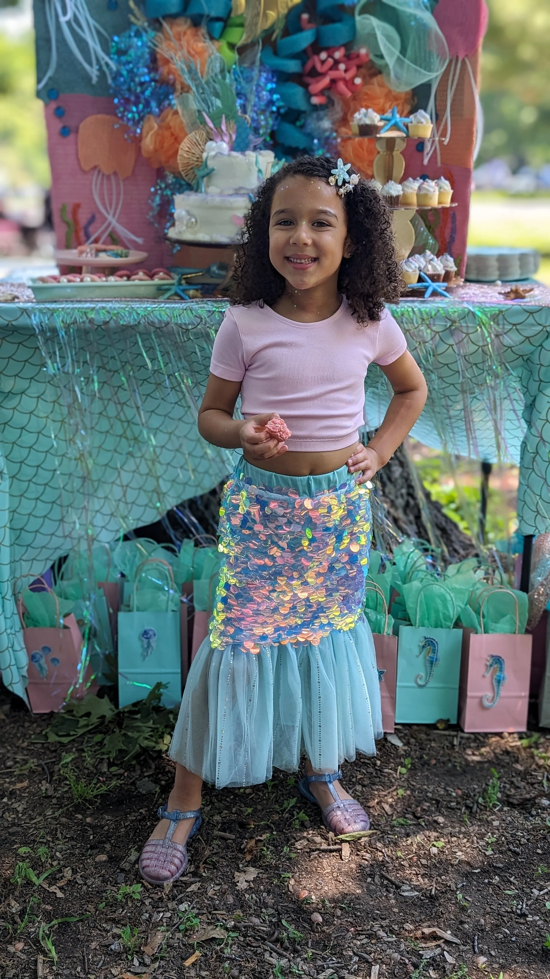 I’ve purchased BJ’s cakes for a number of my children’s events but this is the first time I pre-order the plain white, two tiered buttercream cake that has quite the economical price of $29. Like other times, I delved into full-on scrolling at Amazon.com to find the best mermaid themed decor and edible glitter in order to assume responsibility for cake decorating on the day of. I also found affordable, pre-packaged macaroons at Marshalls which made for the perfect hues of pink clams. With a touch of creativity, a little time and some cheap discount finds, I was able to pull it off… a one-of-a-kind, “Under the Sea” birthday experience. Even though I did kick off the birthday festivities by having to call a locksmith because I got locked out of my car, nothing stopped us from truly enjoying and indulging in family, friends and memory making. Here are some fun pics from Luna’s bday this past weekend which I hope you will enjoy.